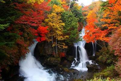 中禅寺湖から100mを一気垂直に流れ落ちる「華厳の滝」とは正反対に、中禅寺湖に向かって落差が凡そ60m、全長は210mの滝が、ザワザワと緩やかに流れ落ちる様は、好対照であるのも見所であろう。