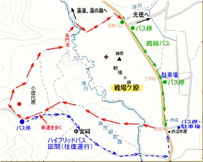 戦場ヶ原の東、湯川より西側のやや高目の湿原を「小田代ヶ原」といって、戦場ヶ原とは一線をかしているようだ。